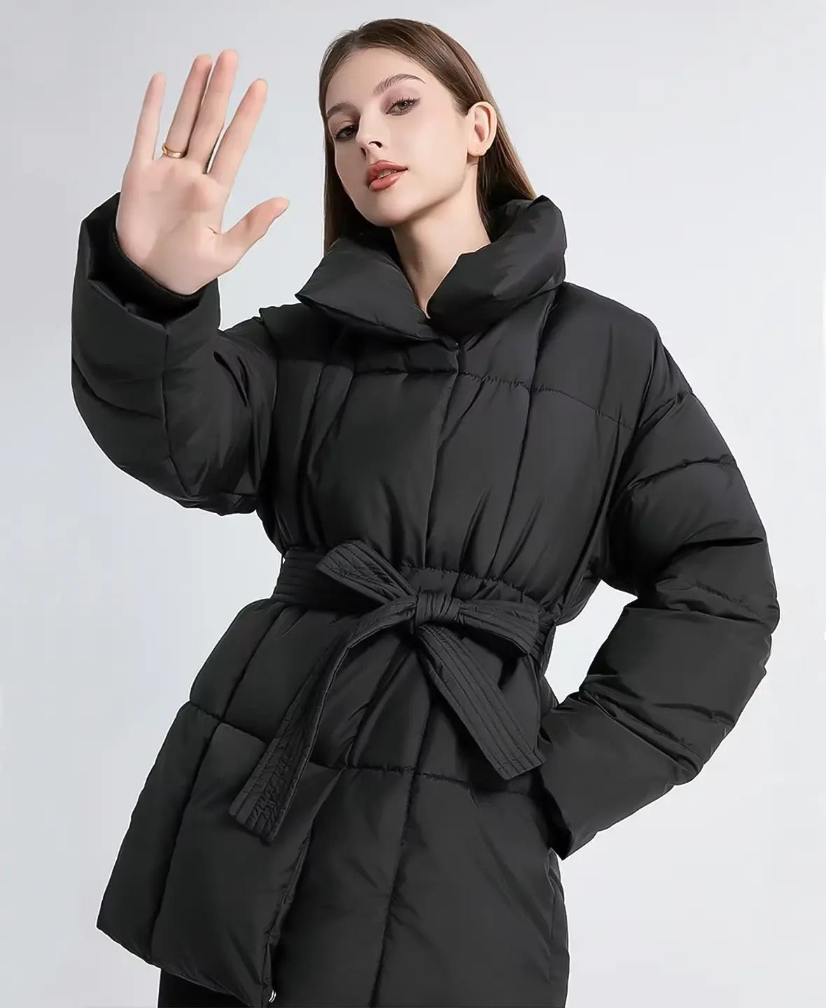 Stay warm and comfortable while highlighting your curves with a flattering waistband. Timeless and versatile, it effortlessly complements any outfit, from casual to polished, making it a staple in your wardrobe.