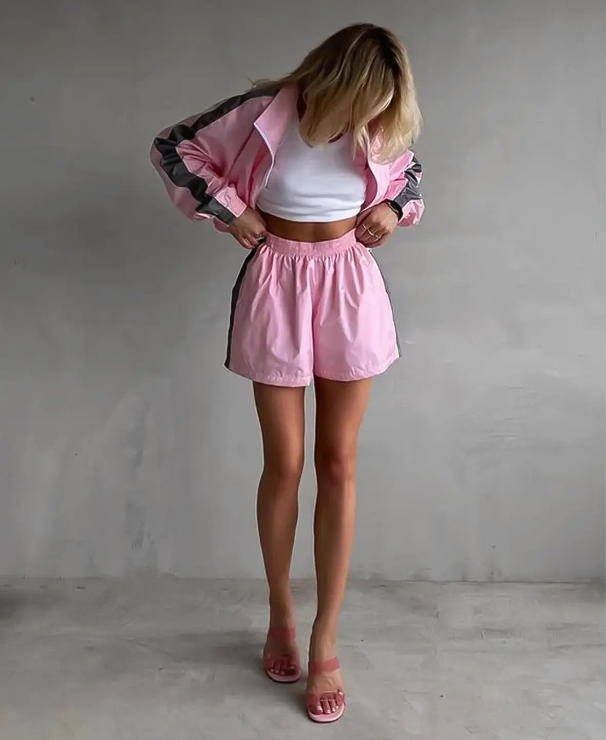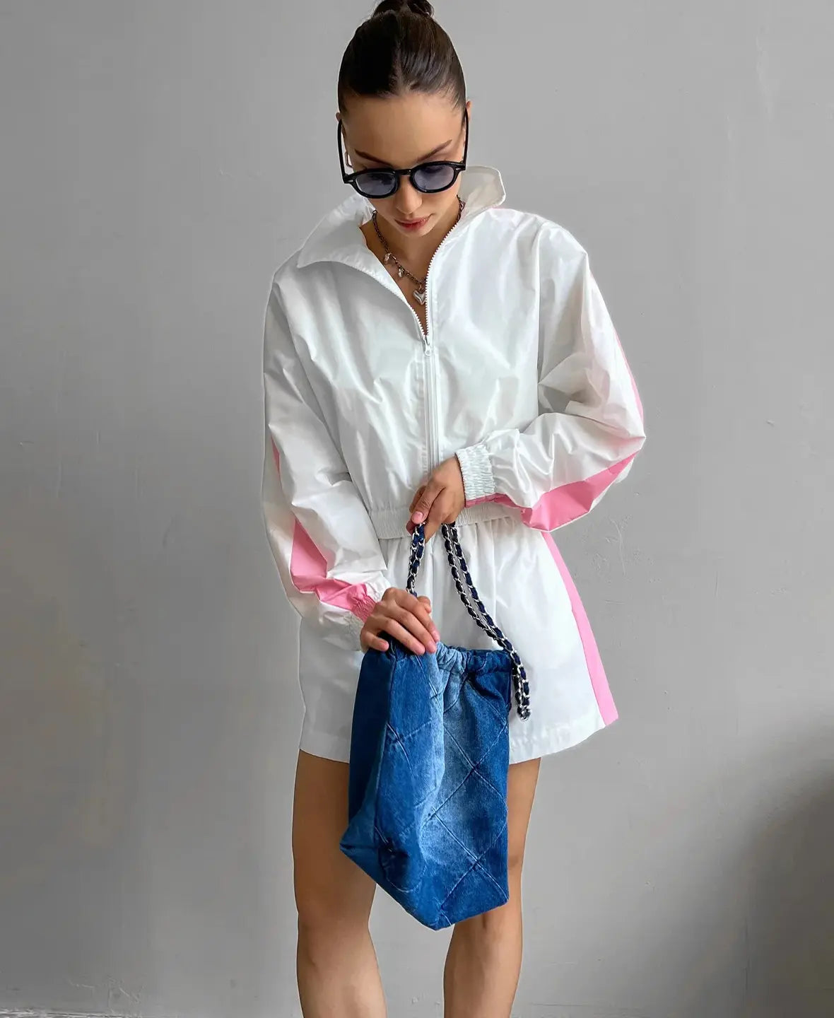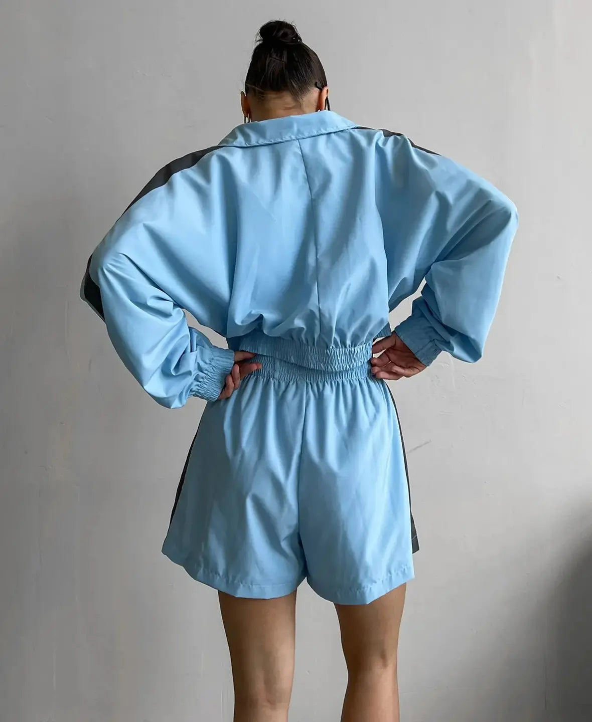 The Clubhouse Track Set brings retro sport style with modern ease. Made from lightweight windbreaker fabric, this two-piece set is designed for comfort, movement, and versatility. Wear it together for a coordinated look, or mix each piece with your wardrobe essentials for endless outfit options.