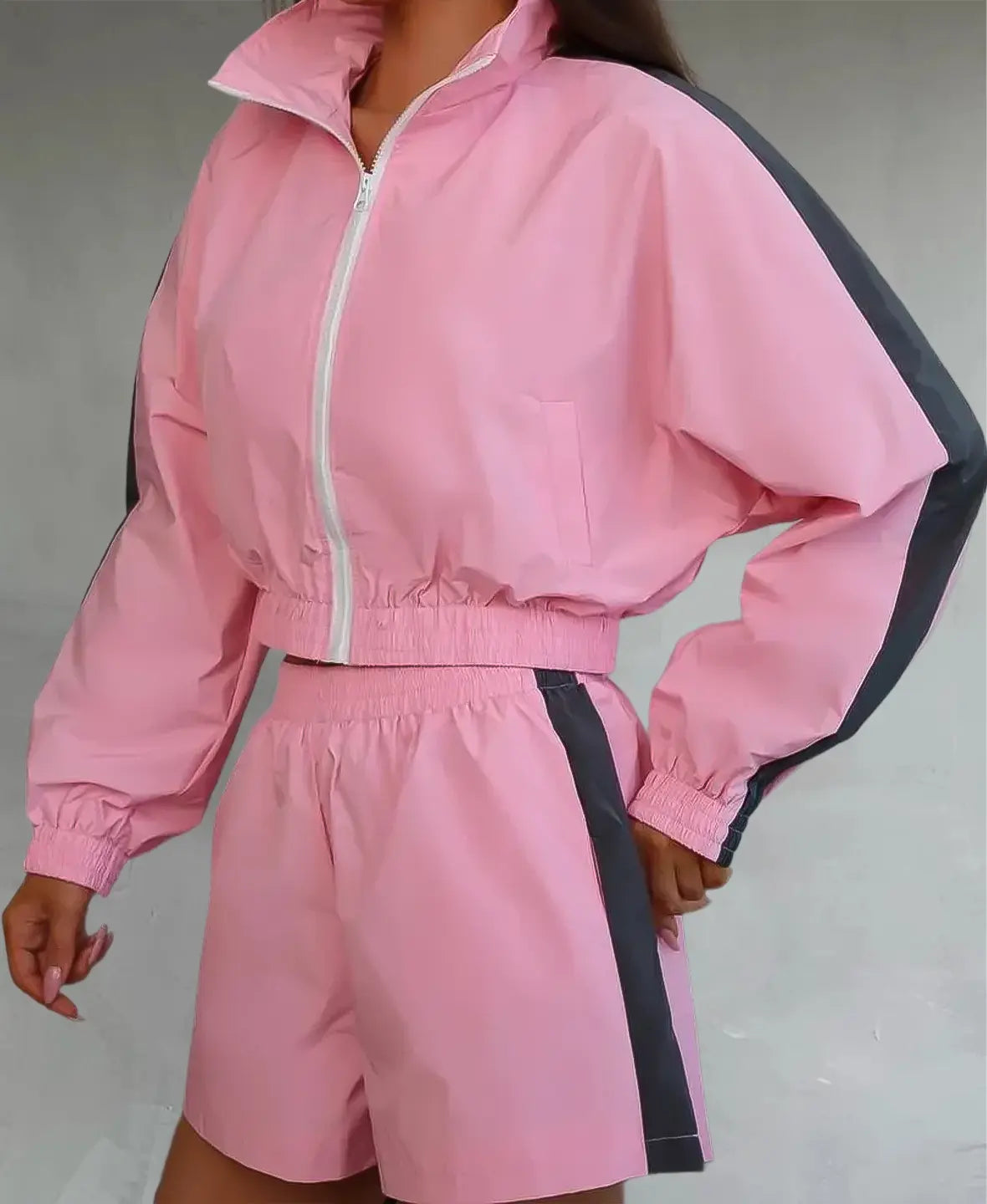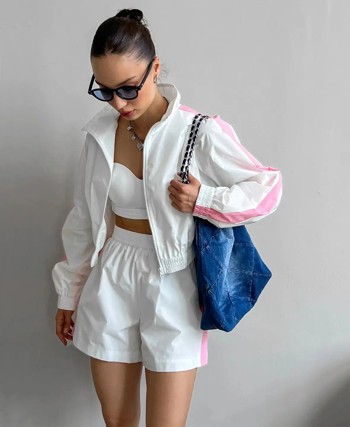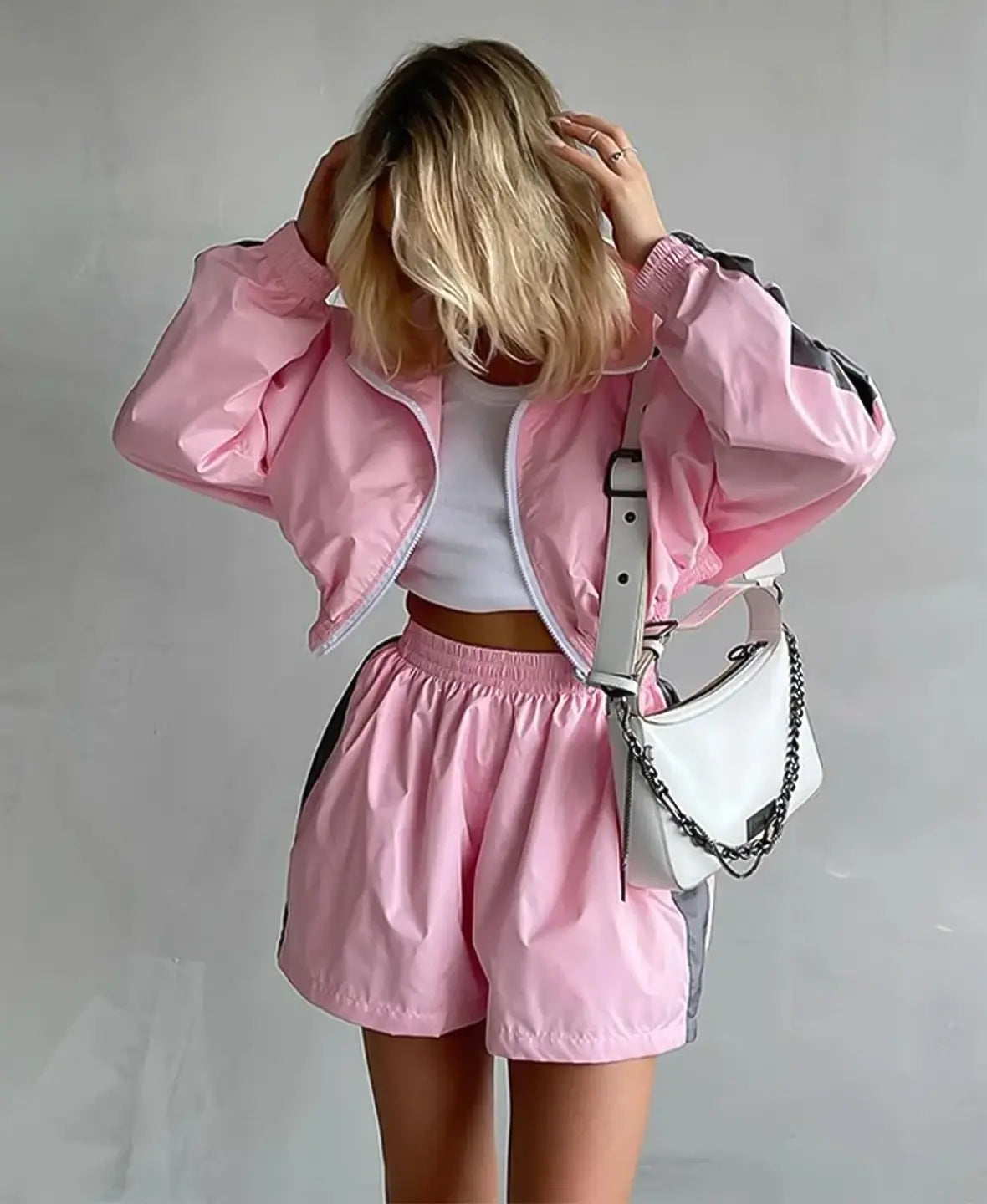 The Clubhouse Track Set brings retro sport style with modern ease. Made from lightweight windbreaker fabric, this two-piece set is designed for comfort, movement, and versatility. Wear it together for a coordinated look, or mix each piece with your wardrobe essentials for endless outfit options.
