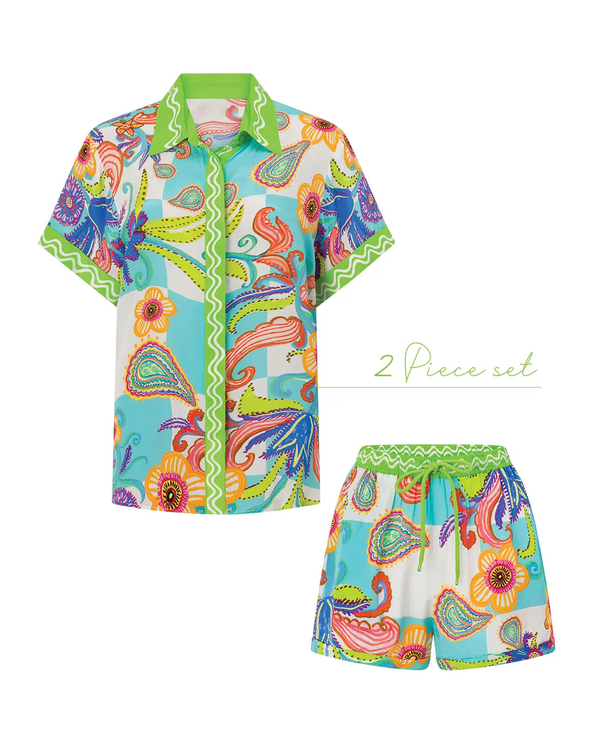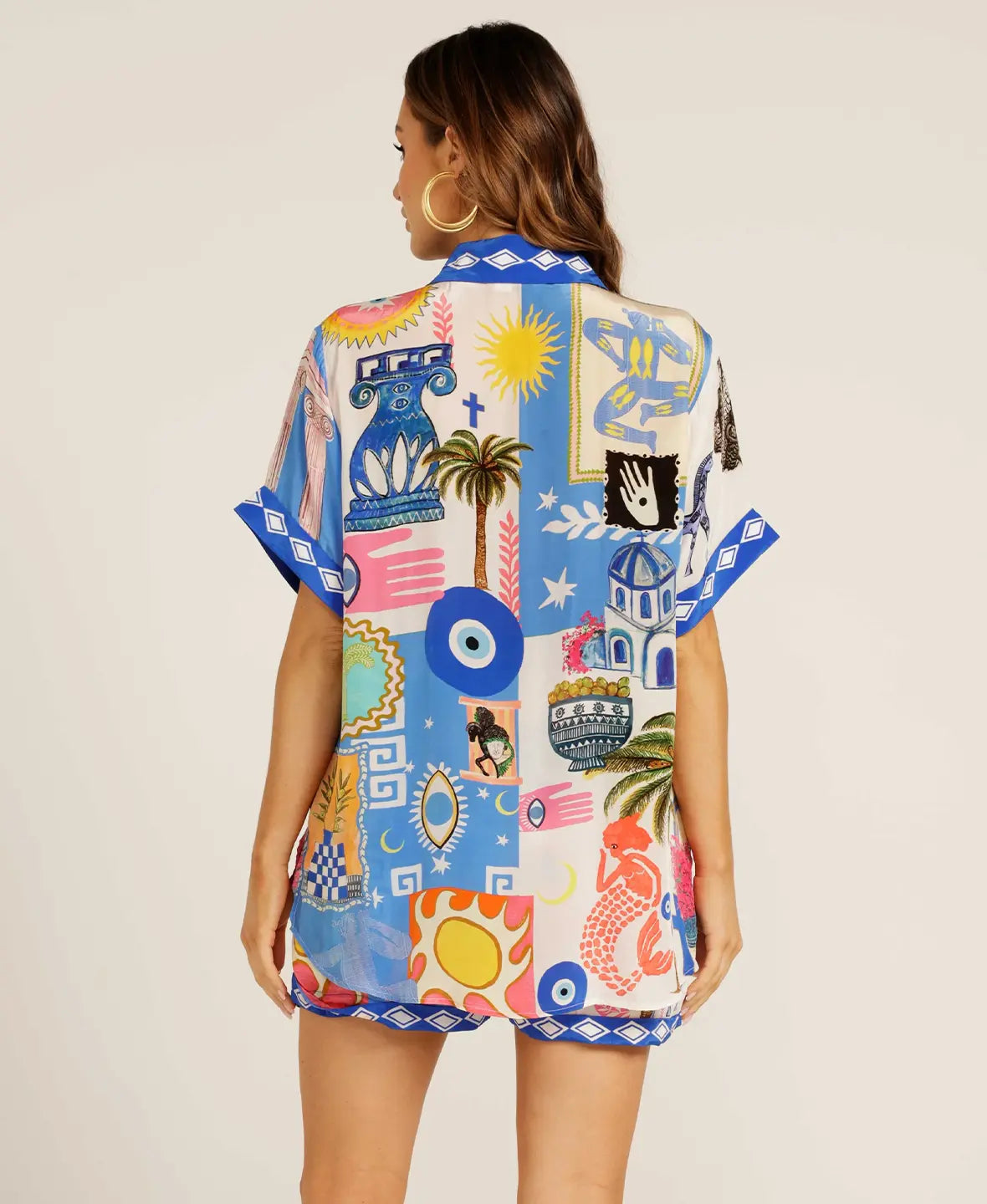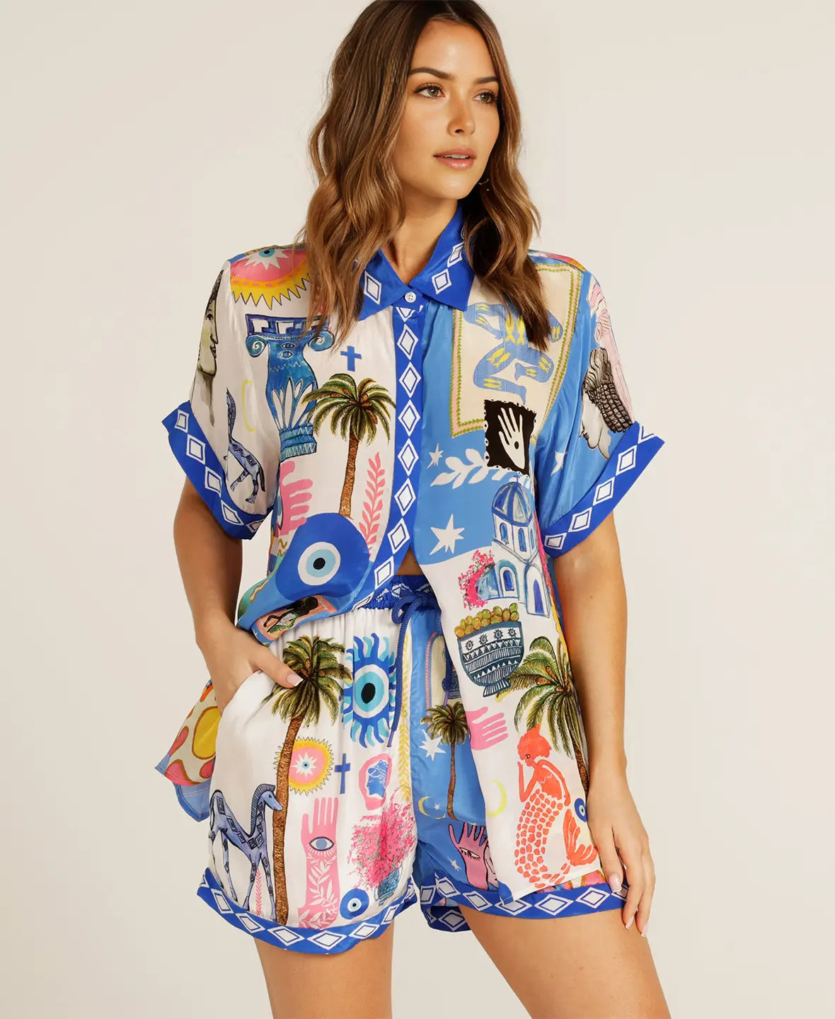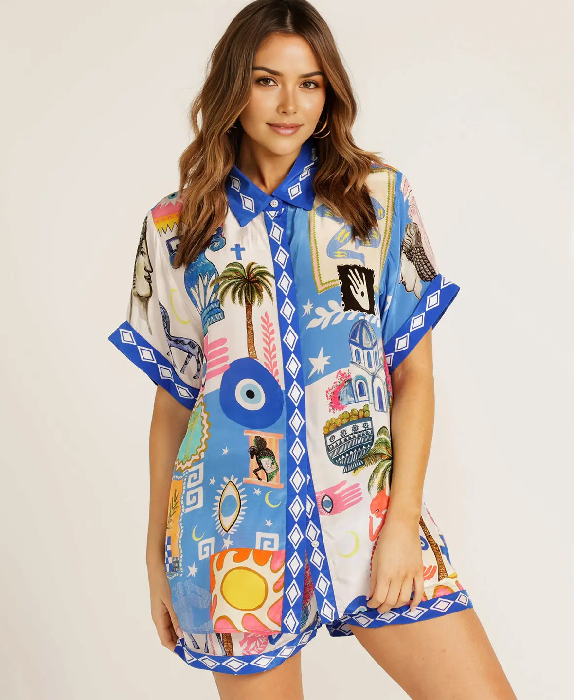 Embrace the summer vibes and let your style dance with the sunset breeze. The 'Greek Paradise Set' elevates your style to a relaxed summer chic, versatile enough to pair with your favorite denim for a sophisticated look or simply wear the shorts for that perfect casual stroll.