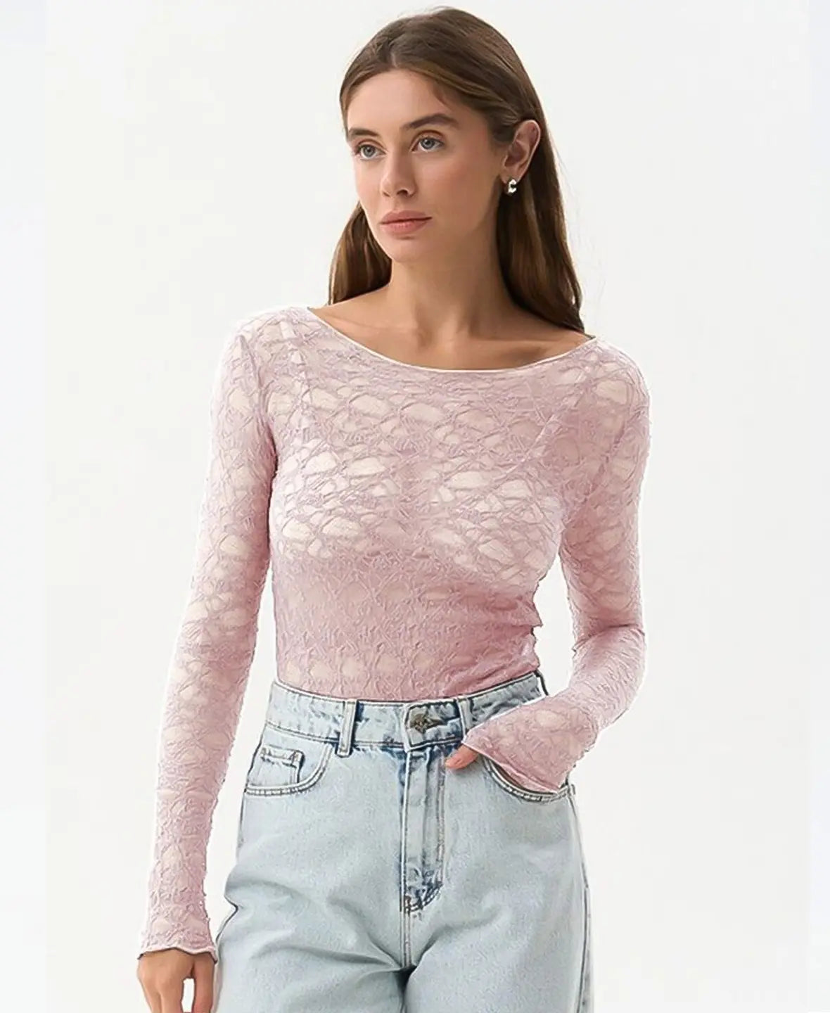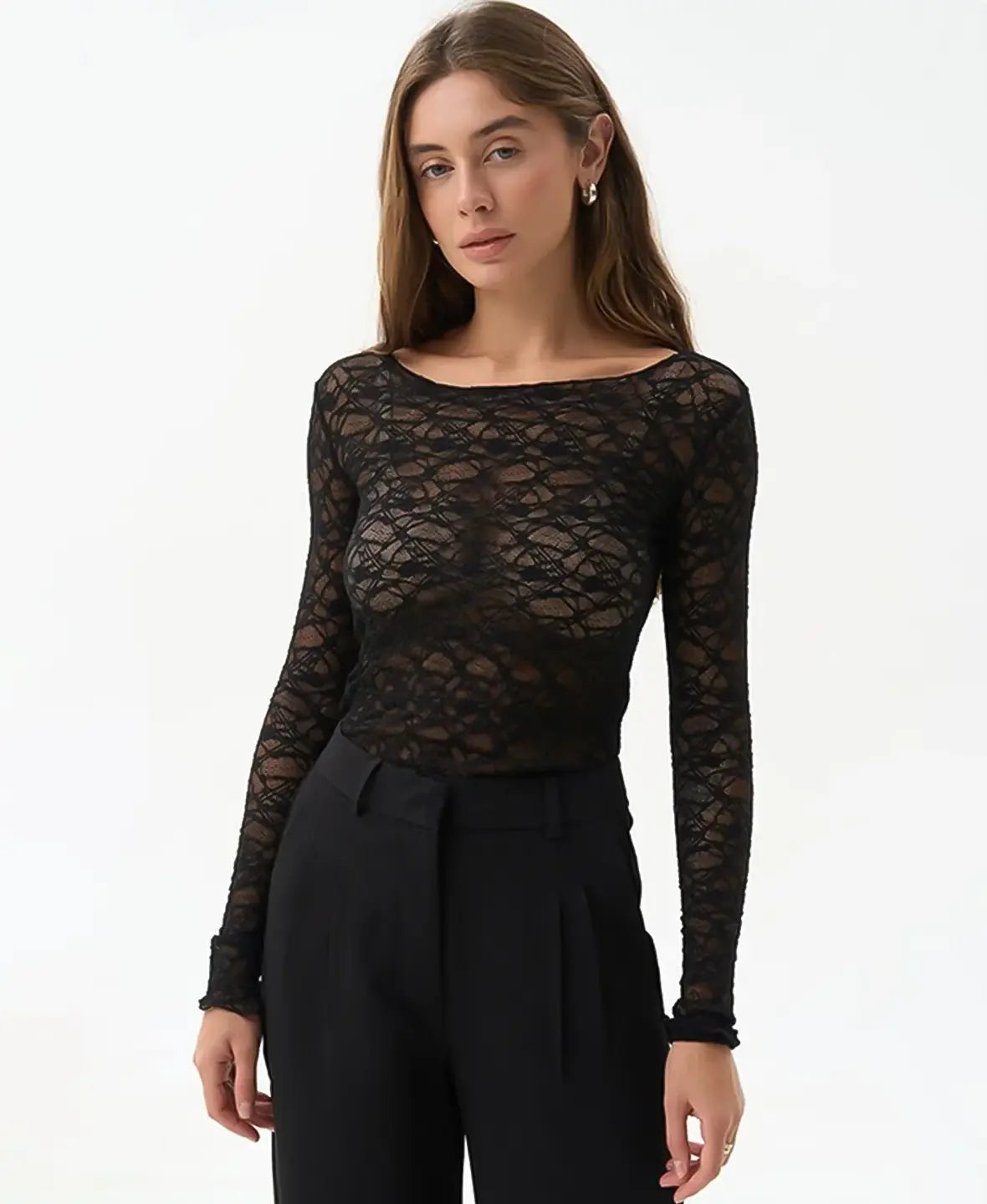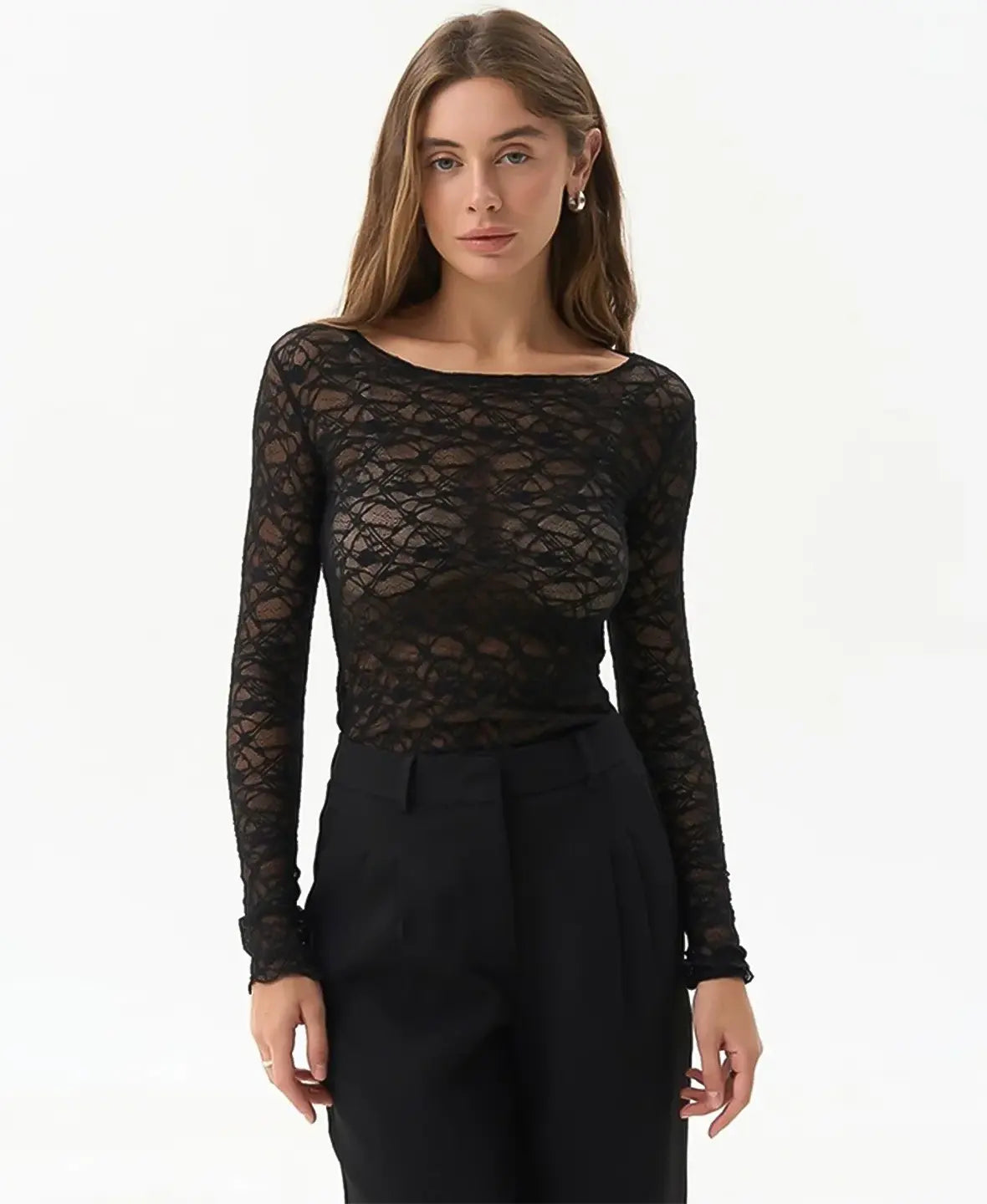 Lightweight, sheer, and subtly bold — this lace top brings effortless allure to any outfit.