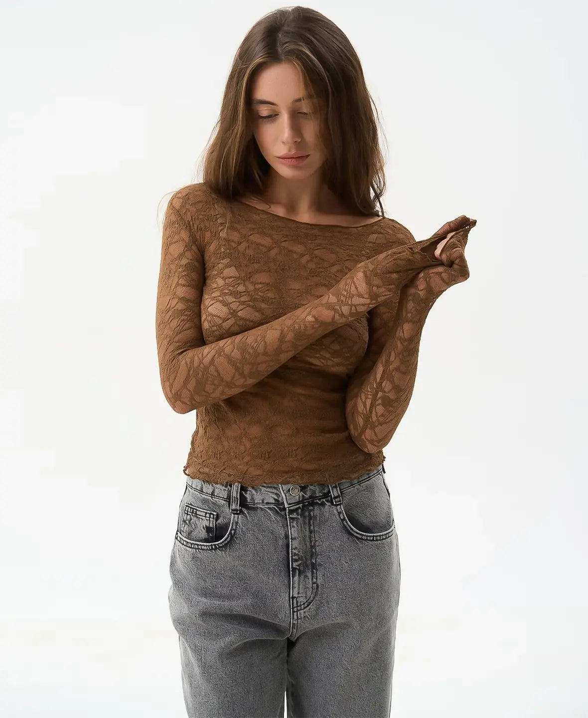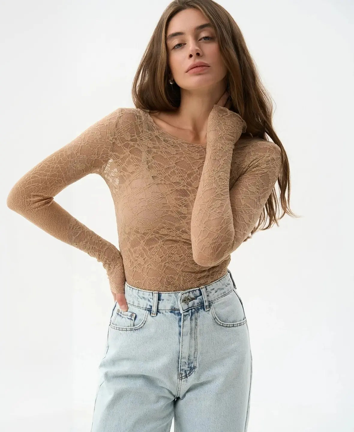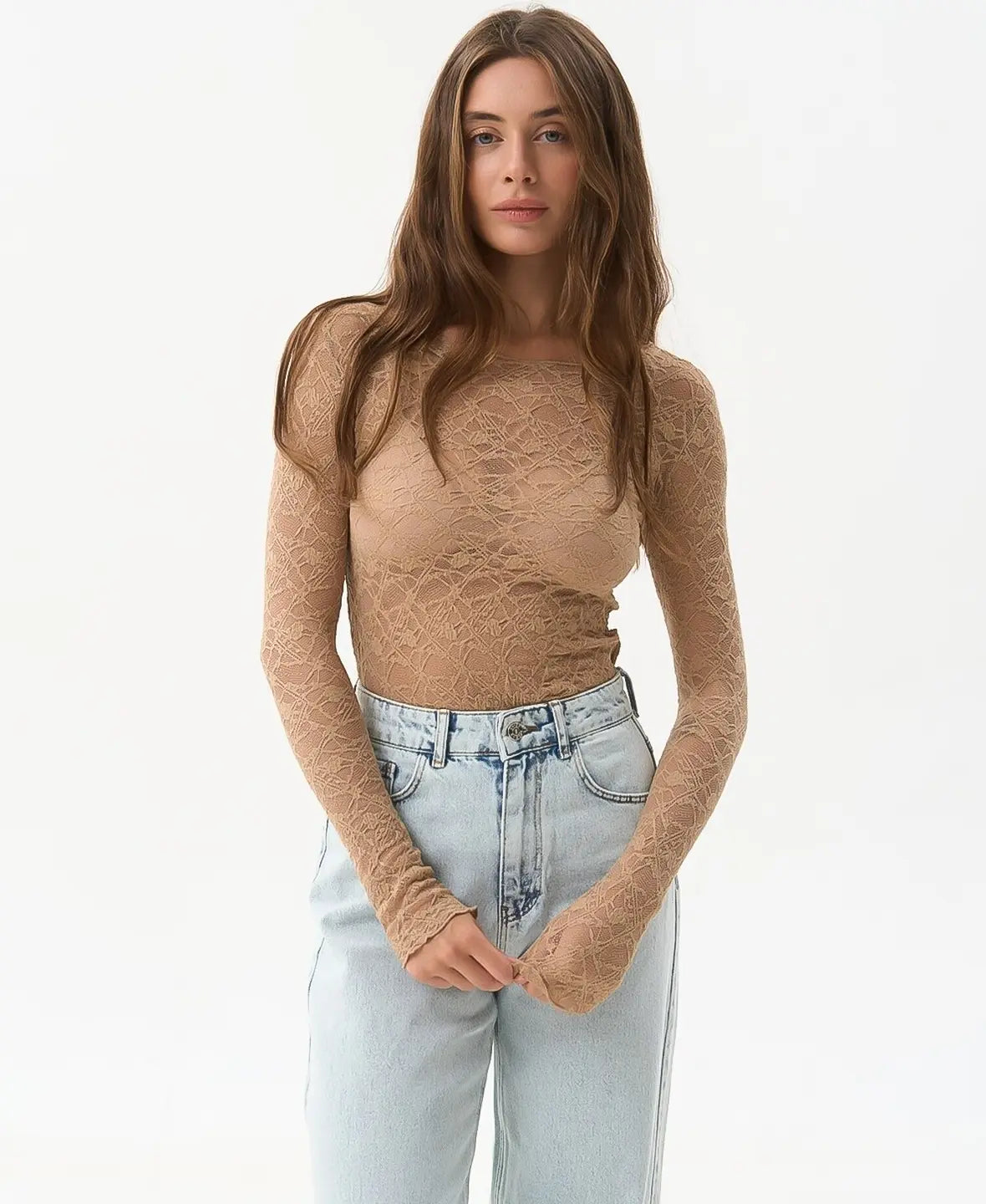 Lightweight, sheer, and subtly bold — this lace top brings effortless allure to any outfit.